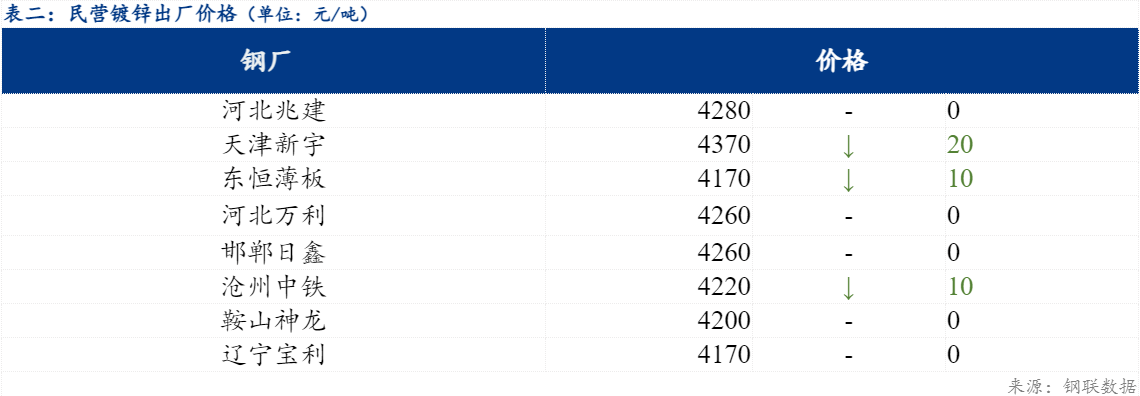 现北方地区民营镀锌板卷整体出厂价格在4170-4370元/吨。