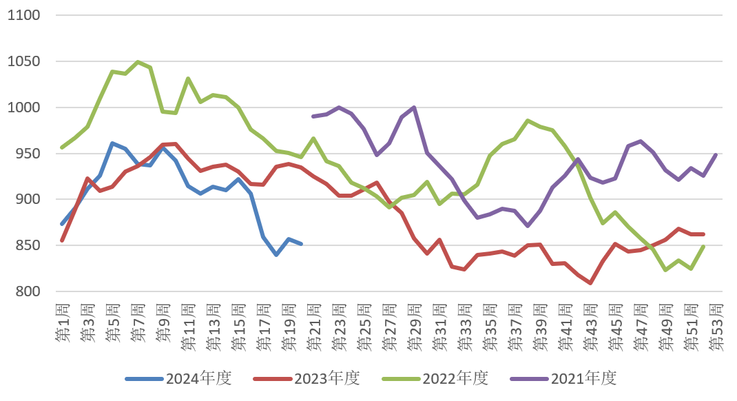 根据钢联数据,本周焦炭库存846.31万吨,上周851.29万吨,焦炭库存在上周有所反弹后,本周库存继续下降,主要在于终端需求预期有所改善,供应端产量收紧的条件下,需求预期有所改善,库存进一步下降。
