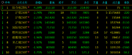 早盘收盘,国内期货主力合约涨跌互现,沪银、沪锡、沪镍、国际铜、燃料油跌超2%。涨幅方面,集运指数(欧线)涨超2%,菜粕、棉花、豆粕、尿素、红枣、鸡蛋、氧化铝、丁二烯橡胶涨超1%。
