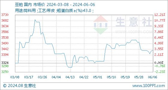 6月6日生意社豆粕基准价为3428.00元/吨