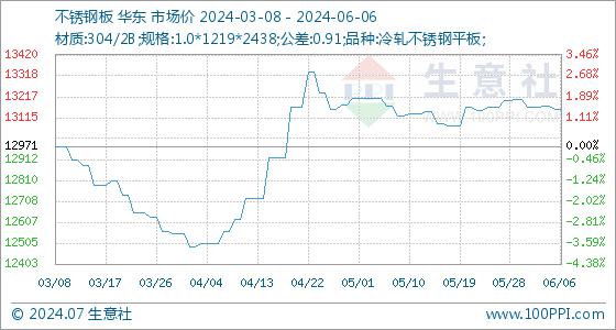 6月6日生意社不锈钢板基准价为13157.14元/吨