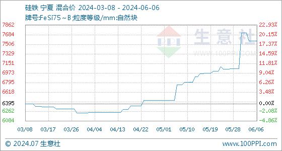 6月6日生意社硅铁基准价为7564.29元/吨