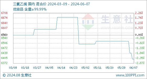 6月7日生意社三氯乙烯基准价为6400.00元/吨