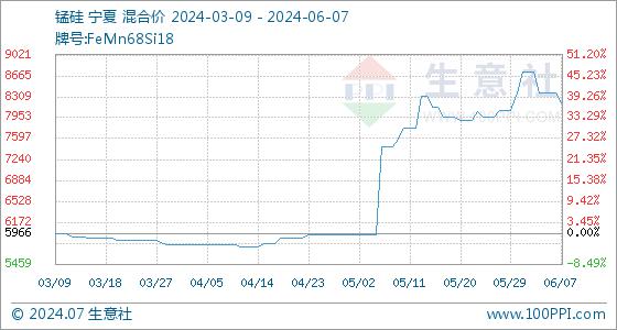 6月7日生意社锰硅基准价为8375.00元/吨