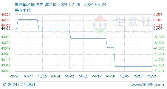 5月24日生意社聚四氟乙烯基准价为43333.33元/吨