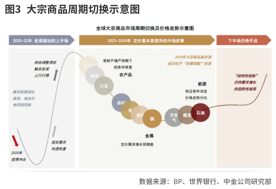 中金公司认为,随着全球制造业周期重启、产业链重新布局、地缘政治冲突和全球再工业化步伐的加快,在新的宏观范式下,叠加超级周期上半场,美国等海外市场的需求有韧性而供给不足进而导致通胀中枢维持较高位,很可能是跨周期的结构性现象。金融属性较明显的铜、油等大宗商品的价格中枢在通胀中枢维持高位的大背景下或在很长一段时间维持高位。