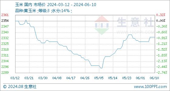 6月10日生意社玉米基准价为2334.29元/吨