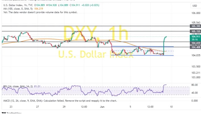 Kitonyi在文章中写道,美国非农就业数据公布后,美元指数上周五从104.03左右的日内低点大幅反弹。美元指数似乎已经完成从横向通道的向上突破。