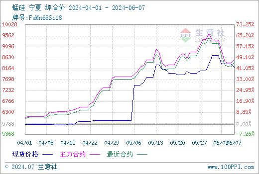 在期货下跌、钢厂招标出价不及预期的压力下,硅锰市场盘整回落运行。但由于成本端支撑仍较有力,也有所限制硅锰市场低价出货情绪。根据生意社商品行情分析系统的数据显示,6月7日硅锰在宁夏地区(规格为FeMN68Si18)的市场报价在8150-8400元/吨左右,市场均价8208元/吨,较月初降5.92%。