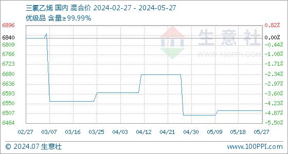 5月27日生意社三氯乙烯基准价为6520.00元/吨