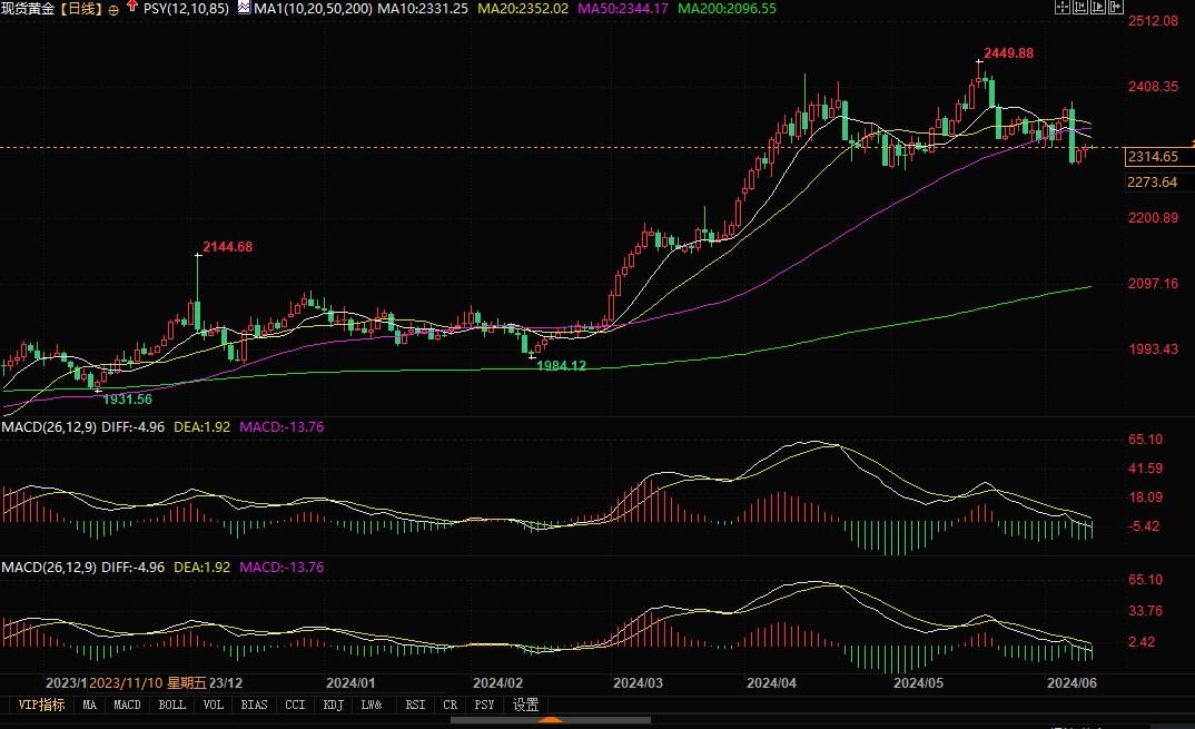 北京时间6月12日14:15,现货黄金报2314.48美元/盎司