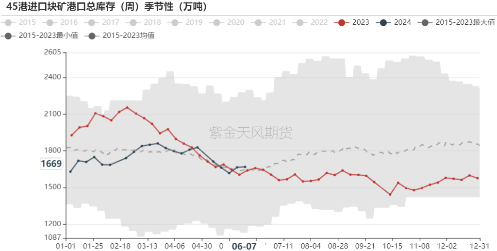 库存45港库存增68万吨,贸易矿占比增加。15港卡粉减28万吨,NMPJ增3万吨,低品矿增35万吨;15港块矿增36万吨,球团减7万吨,精粉减3万吨。钢厂进口矿总库存增14万吨,厂库减73万吨,海漂+港口增87万吨;进口矿可用天数20天环比持平。