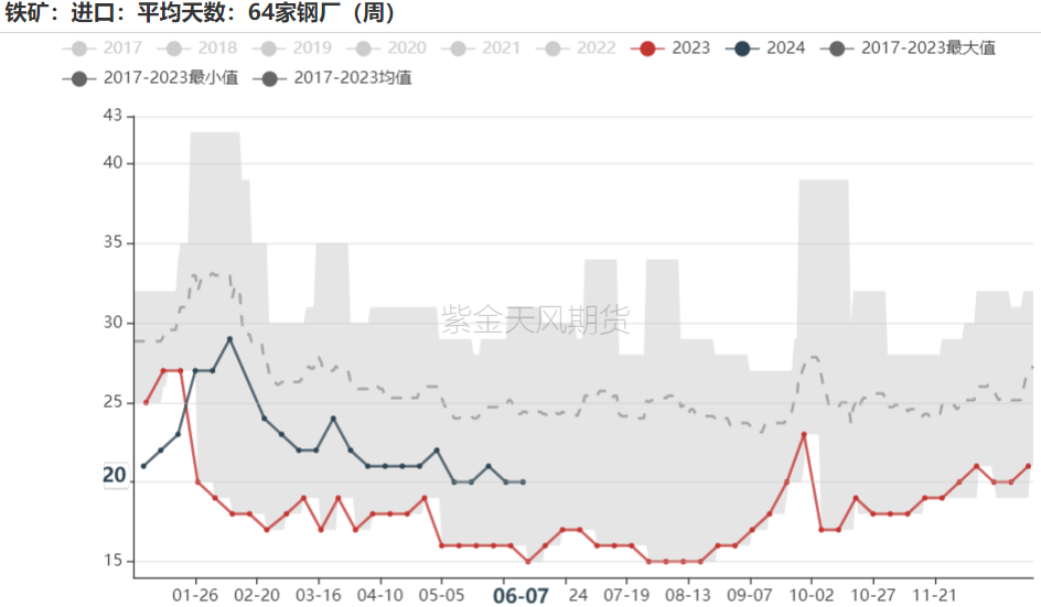 钢厂:钢厂进口矿总库存增14万吨,厂库减73万吨,海漂+港口增87万吨;进口矿可用天数20天环比持平
