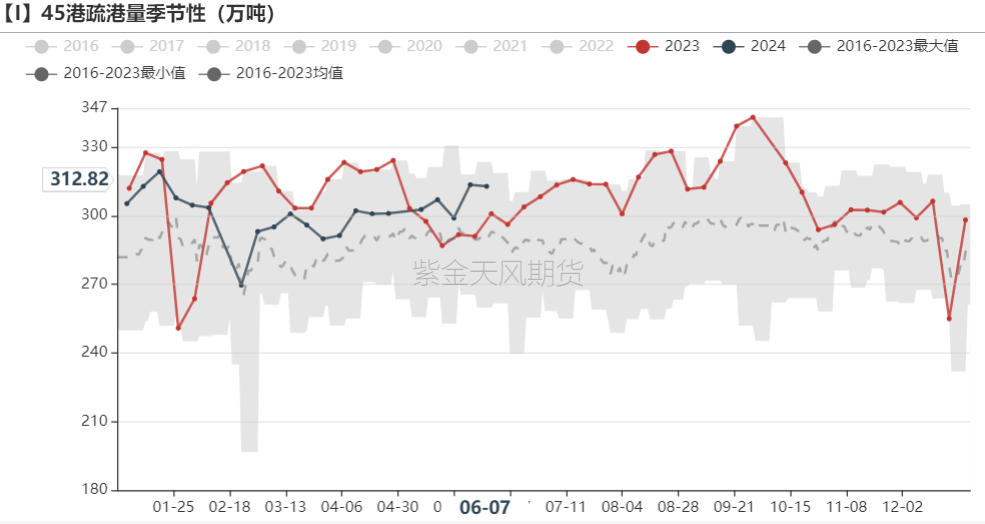 疏港:上周45港日均疏港量313万吨环比减1万吨/日