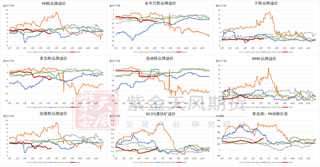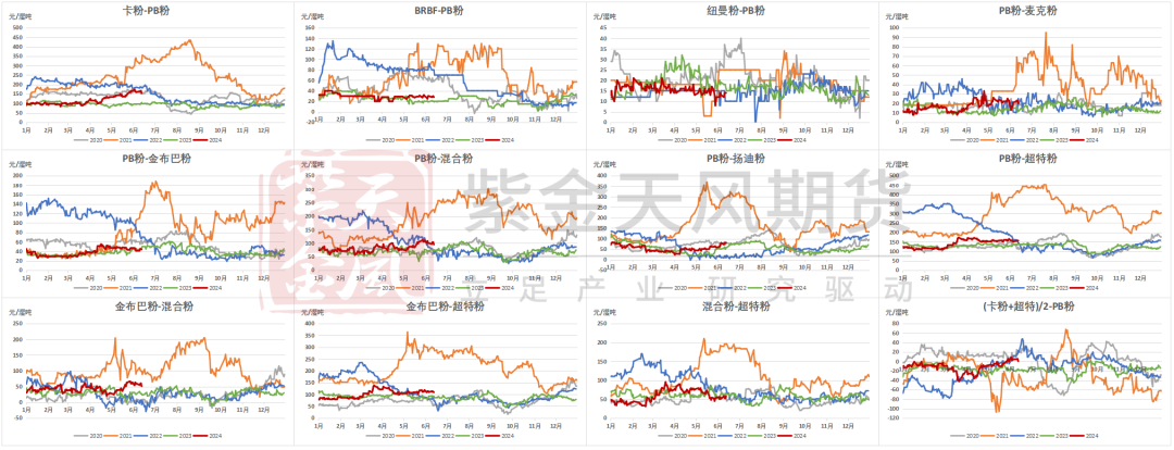 品种间差异主流粉矿溢价小幅上行;块粉价差走扩。