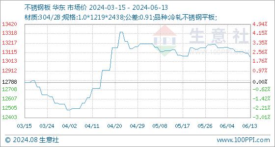 6月13日生意社不锈钢板基准价为13107.14元/吨