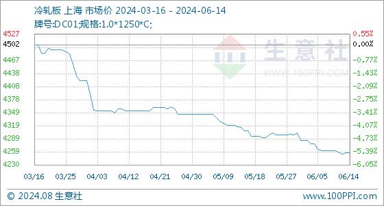 6月14日生意社冷轧板基准价为4257.50元/吨