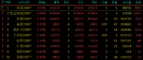 期货收评:焦炭、集运指数涨4%,焦煤尿素涨超2%,铁矿石涨2%,锰硅跌超3%;供需双弱焦煤短期或震荡处理