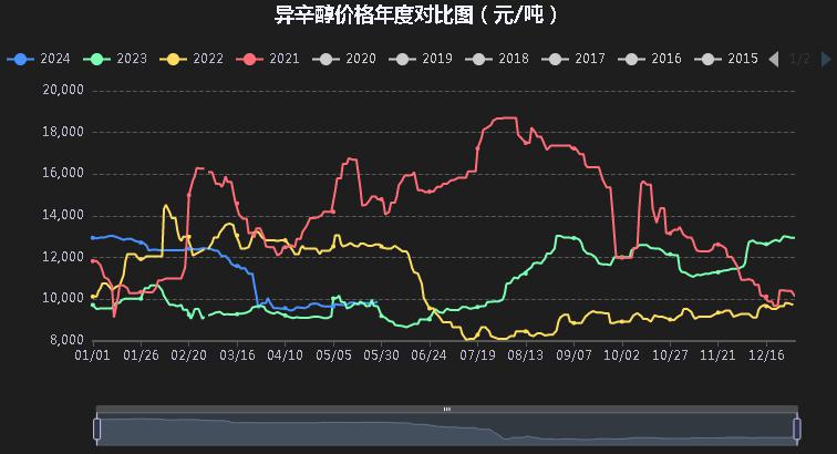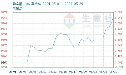 据生意社商品行情分析系统,截止5月29日,异辛醇报价9950元/吨,较5月1日异辛醇报价9660元/吨上涨,涨幅3.00%。5月异辛醇价格处于市场底部,异辛醇价格下跌空间有限,国内异辛醇市场重心自4月中旬触底以来,异辛醇价格重心缓慢上移。从需求端来看,5月份下游增塑剂以及丙烯酸异辛酯装置轮流检修导致买盘持续性不高,异辛醇波动区间收窄。异辛醇市场缺少连续上行动力,异辛醇价格小幅震荡上涨。