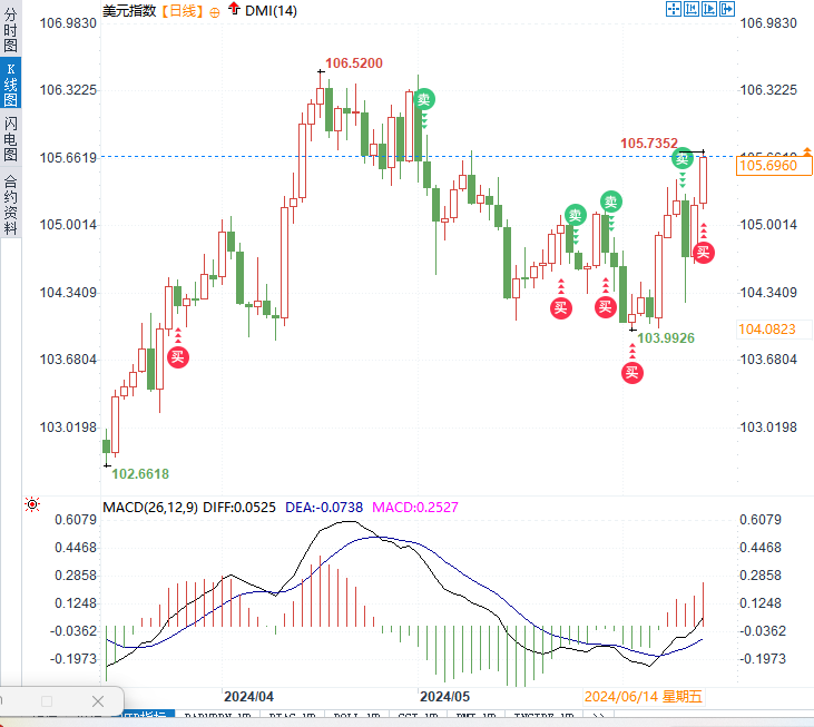 美元指数连续两个交易日上涨,目前交投于105.70水平附近,日内涨幅0.46%。美元走势受到美联储政策和经济数据的直接影响。尽管美联储在最近的会议上推迟了降息的预期时间,但低于预期的生产者价格和消费者价格数据,以及劳动力市场的降温,为美元提供了支撑。Amundi的高级多资产投资组合经理Amelie Derambure认为,通胀减速过程中可能需要一些较弱的增长和需求,这正是我们本周所看到的。