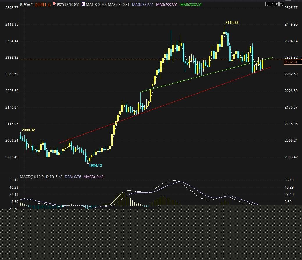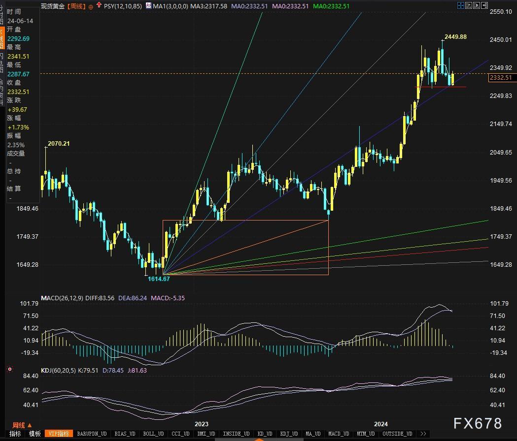汇通财经APP讯——黄金自6月7日一天暴跌逾100美元之后,连续五天在夹缝中多空拉锯,整体表现出多头尝试反攻的决心:上周(0610-0614当周)金价整体上周收涨了近40美元至2332.51美元/盎司,其实最后一个交易日给了大约75%的贡献度(收涨近30美元)。