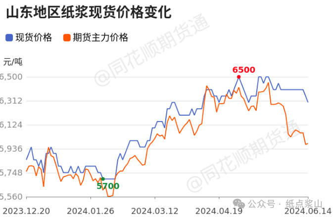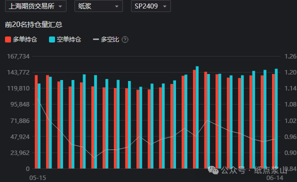 纸论浆湖: 纸浆主力合约周线盘面连续回落下行,期价盘面整体低开低走,日线增仓破位六千一线寻低支撑,期现表现弱势回落为主。期现价差波动看,期价调整空间明显大于现货波动,商品情绪弱势带来资金施压期价,期现价差扩大拖累现货信心。短线消息面看,巴西洪水带来供扰动,盘面短线低位反弹明显,后市随着期价走弱,盘面跌幅收回期价走弱,日线技术性寻低支撑。 目前数据看,五月进口增速保持增长,市场对供应预期乐观,现阶段市场矛盾在外盘挺价带来成本支撑,国内需求走弱,现货买盘市场信心足。供应和需求逻辑博弈下,叠加商品市场弱势调整,资金面偏空运行。从绝对成本和期价表现看,盘跌幅扩大带来买近卖远套利机会增大。