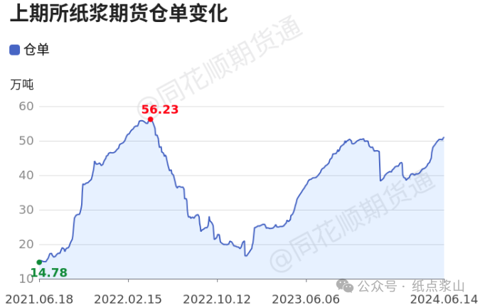 历史数据显示,自2021年1月29日以来,纸浆期货库存最高为53.69万吨,最低为10.53万吨,库存均值录得33.60万吨,当前库存(43.26万吨)较均值增加28.78%。