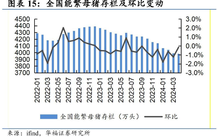 从去化的角度来看,自从去年以来,我国能繁母猪的存栏量开始呈现逐月下降的趋势,这也逐步地影响了基层生猪的出栏规模,尤其是我们北方地区的中小散户产能淘汰进一步加快,造成了局部地区出现了阶段性供需偏紧的情况。在全国母猪产能下降的影响之下,生猪供需关系进入了短暂的断档期,这将进一步的助力猪价持续上涨。