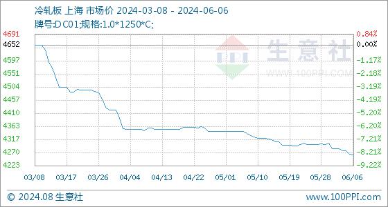 6月6日生意社冷轧板基准价为4265.00元/吨
