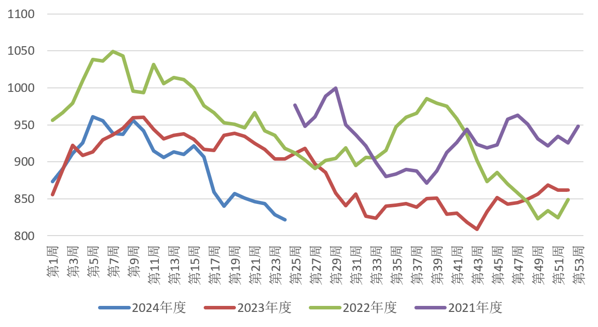 本周焦炭大幅反弹,但是周五又窄幅震荡收阴线,焦煤走势偏弱,反弹力度较弱,从炼焦煤基本面来看,本周供需稳定,库存延续增加,供需驱动力度一般,6月15日,山东和河北地区焦炭第二轮降价将正式落地,幅度50—55元/吨,近期螺纹钢表观需求大幅走弱,现实需求也表现一般,随着传统淡季到来,北方高温天气及南方强降雨将对需求形成持续冲击,预计需求高度较为有限,在淡季需求会有一定韧性,但难有亮眼表现,预计本轮反弹空间有限,后续双焦可能继续偏震荡运行,操作方面,建议观望。