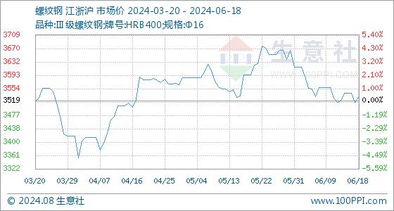 6月18日生意社螺纹钢基准价为3516.22元/吨