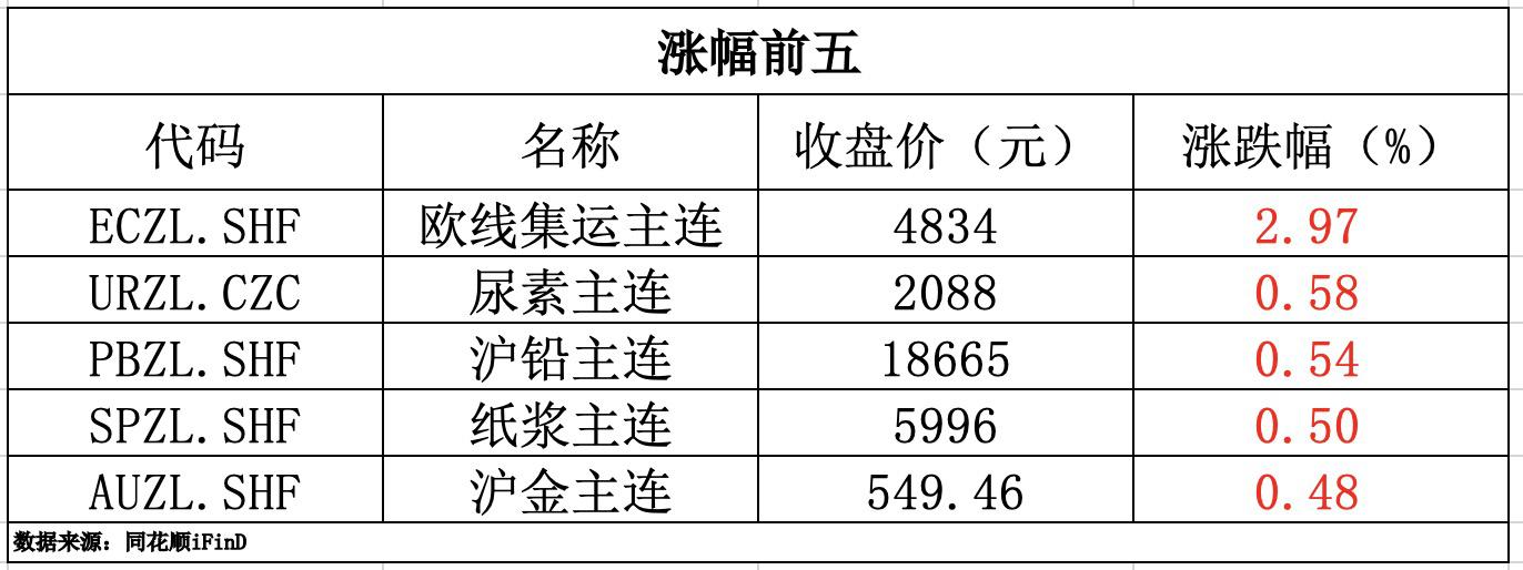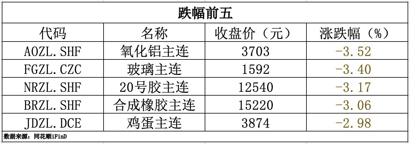 6月17日,国内商品期市收盘多数下跌,氧化铝、玻璃、20号胶、合成橡胶跌超3%,鸡蛋跌超2%;涨幅方面,欧线集运涨超2%,尿素、沪铅、纸浆、沪金小幅上涨。