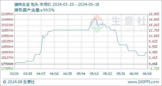 6月18日生意社镝铁合金基准价为1850000.00元/吨
