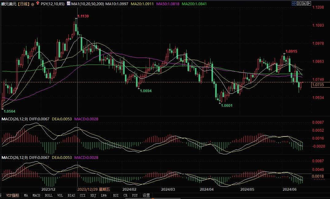 北京时间6月18日9:01,欧元兑美元报1.0735/36