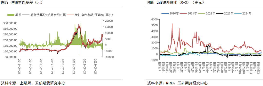 价格方面,年初至今锡价一路走高,但国内库存的持续走高压制了现货升贴水的走高,国内现货升贴水整体处于低位震荡。海外方面,年初LME的去库拉动了LME现货升贴水的走高,但随着印尼复产后LME库存的反弹,现货升贴水开始持续走弱重回低位。