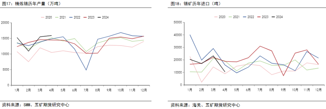 整体而言,今年国内精炼锡产量及锡矿进口整体处于历史高位。