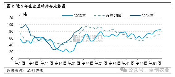 【导语】进入6月,国内豆粕现货市场供应压力明显增加,大量原料陆续到港,叠加工厂开机保持高位水平,下游接货意愿不强下,企业豆粕库存不断攀升。卓创资讯预计,短期内企业豆粕库存或进一步积累,现货供应压力或继续施压豆粕价格。