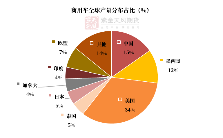 全球来看,2024年美国和欧盟商用车市场份额预计增加。