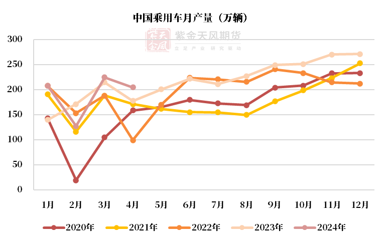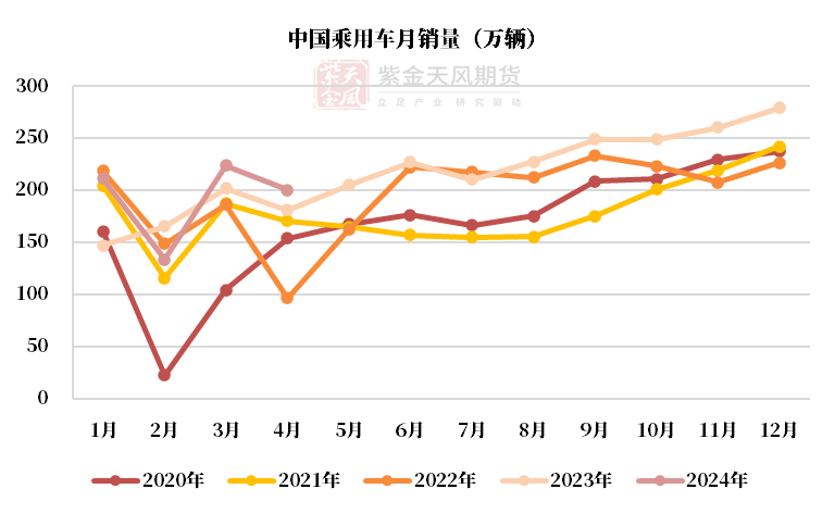 乘用车消费情况:2024年1-4月中国乘用车销量为768.6万辆,同比大幅增加10.6%,处于历史高位。2024年1-4月中国乘用车销量略大于产量。