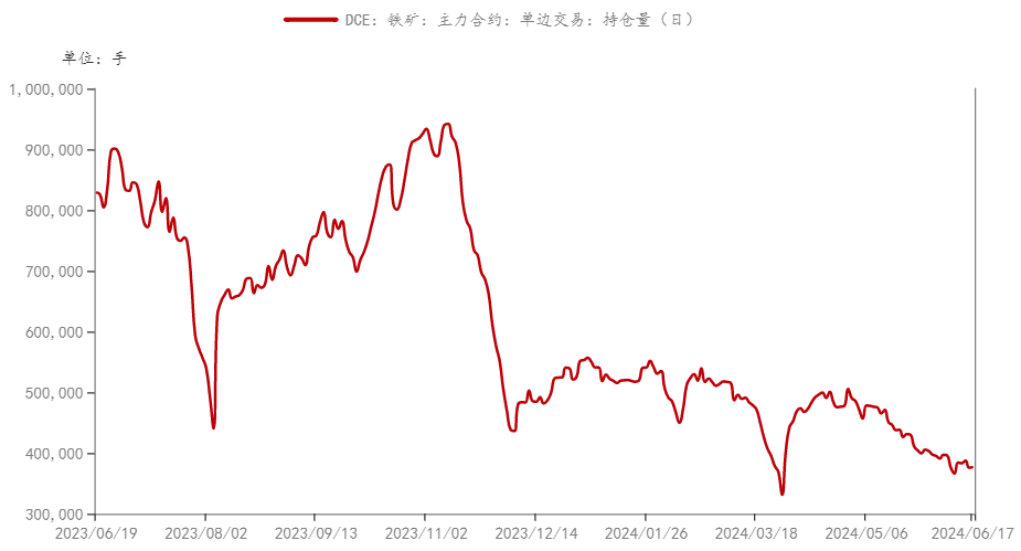 截至6月14日,铁矿2409合约持仓375774手,较上一周增2.6%。