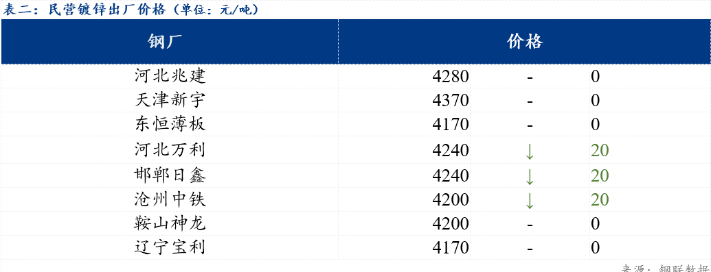 现北方地区民营镀锌板卷整体出厂价格在4170-4370元/吨。