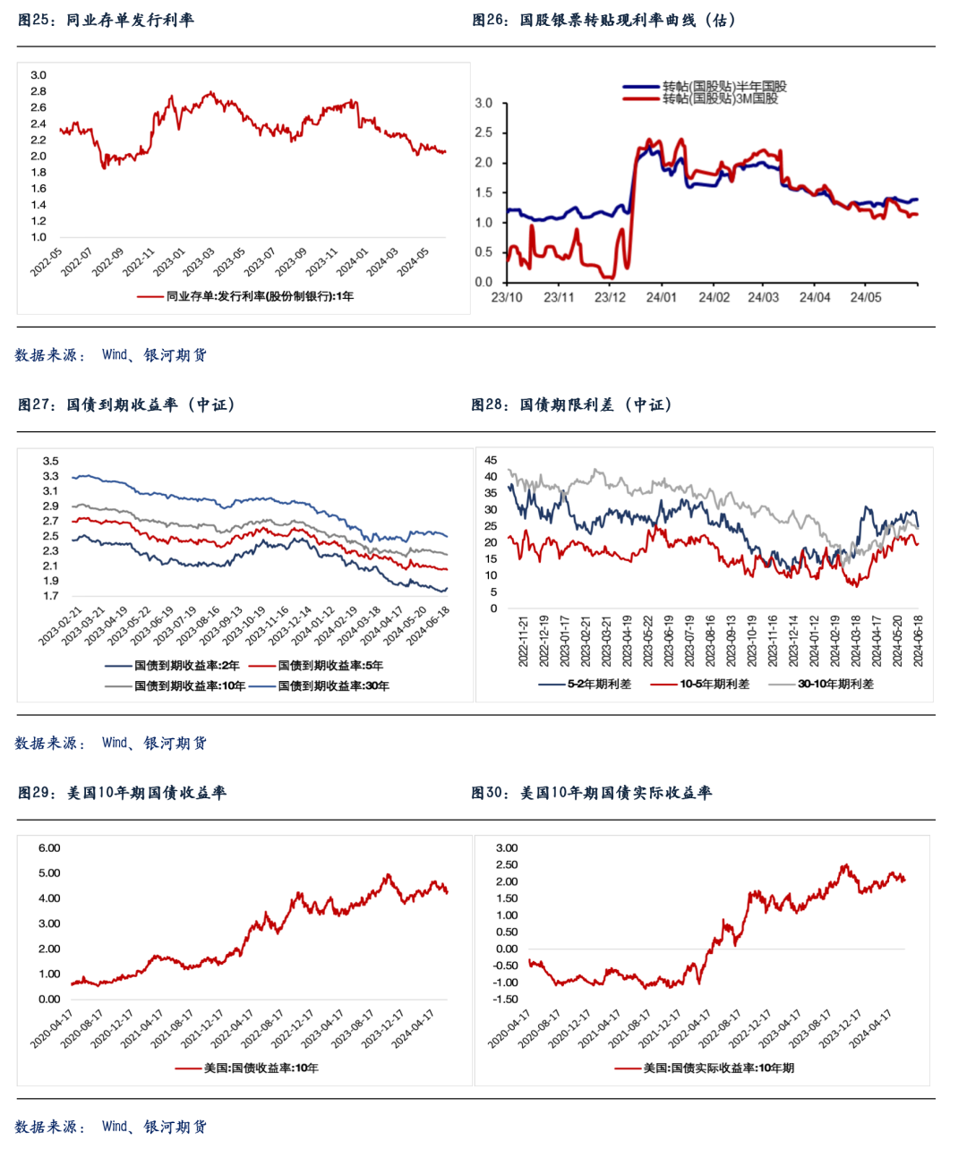 央行喊话效果边际递减,昨日长债收益率下破“政策底”关键点位,并未遭遇太多抵抗。若晚间或明日陆家嘴论坛没有增量信息流出,短期内国债收益率可能将进一步有所下行,曲线斜率也有望继续趋平。操作方面,短期内建议投资者可继续考虑做平7Y以内曲线斜率,即多配T合约空配TF、TS合约。