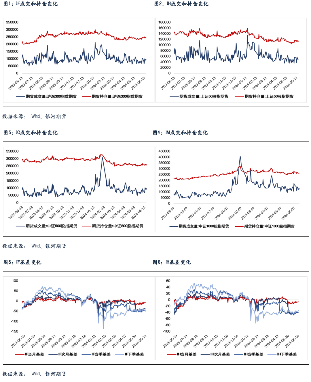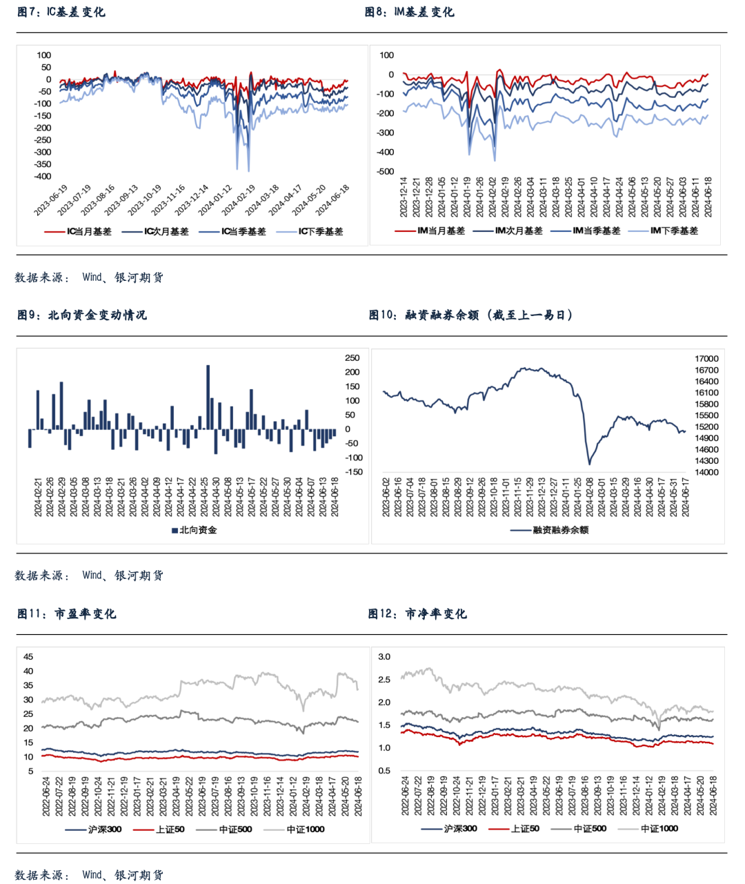 股指期货随现货分化,至收盘,主力成交合约IH2406跌0.05%,IF2406涨0.22%,IC2406涨0.48%,IM2406涨1.06%。期货表现强于现货,IC和IM贴水明显收窄,特别是IM当月合约转为升水。IC、IF、IH和IM成交分别增加13.3%、8.5%、0.1%和13.1%。IC、IF、IH和IM持仓分别增加2.0%、0.4%、0.1%和0.6%。