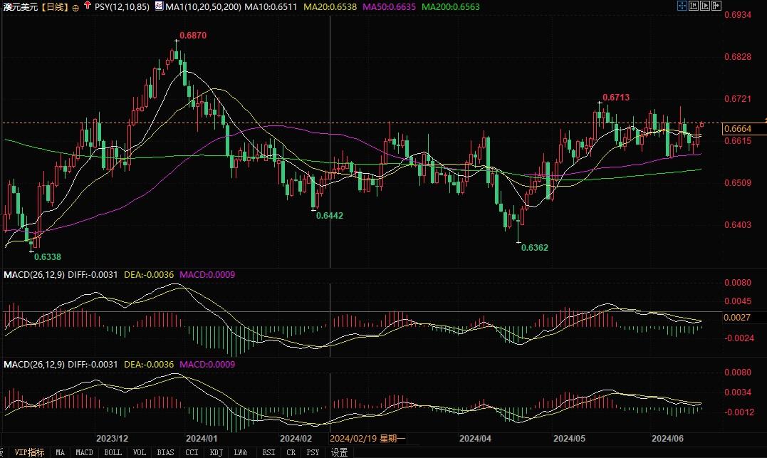 技术分析:澳元短期或继续上涨,突破0.6713将挑战0.6870