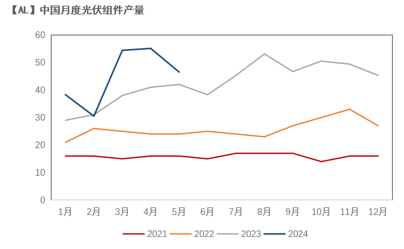 光伏组件产量方面,受制于光伏行业整体大规模亏损以及终端装机消纳有限的等问题,5月光伏装机环比有所下滑,我们预计光伏板块新增装机难以维持去年同期的高增速,预计将增长约15%,与年初预期一致。