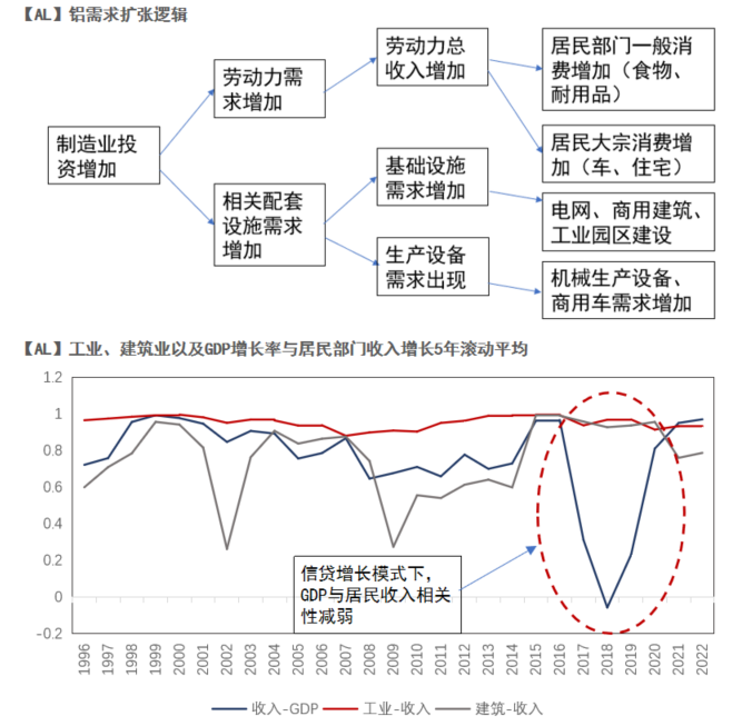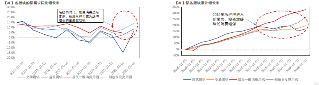 反应到铝需求上,对于生产性领域的投入更加容易推动长期的铝需求增长。