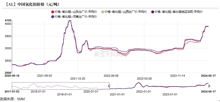 氧化铝是本轮电解铝成本上涨的主要推动因素,由于矿石供应限制问题,全球范围内的氧化铝运行中枢均出现了大幅抬升。