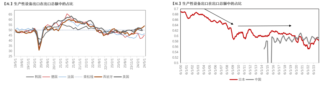 2.本轮制造业周期的回升不仅仅是短期内补库需求的拉动,还是新一轮产能扩张周期的启动。从基本面数据的情况来看,在全球制造业产能扩张的的影响下,生产性设备在中日两国出口金额中的比重出现了明显的抬升。