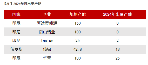 海外供给方面,目前海外新增投产仅有印尼华青25万吨以及俄铝泰舍特13万吨,我们预计全年供给量约为2932万吨。
