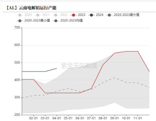 国内供给方面,受限于产能天花板限制,24年及远期新增投产极为有限,基本由产能置换为主,目前国内电解铝供给主要变数为云南地区复产,鉴于目前云南水较好,我们预计2024年全年国内供给量约为4264万吨。